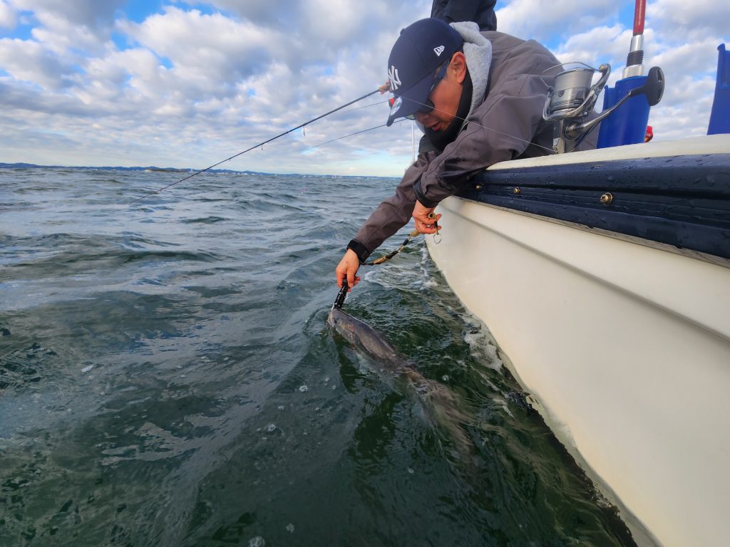 少し移動して今度は良型マゴチをキャッチ!去年に引き続きご参加いただいたM様、いいお土産が出来ましたね