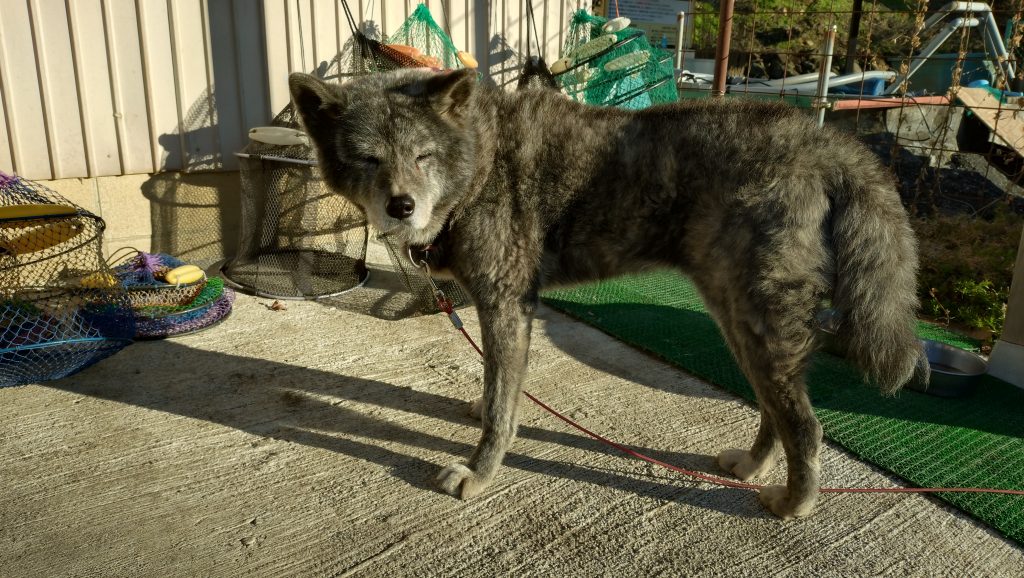 秋田犬の「モモ」とキジトラの「もんじろう」が