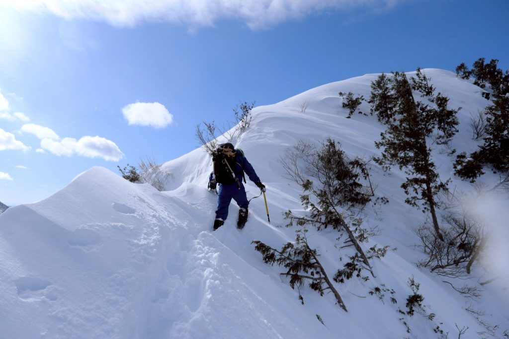 樹林帯を抜けると所により腰上ラッセルになるようなハードなコンディションでした。