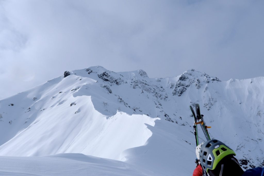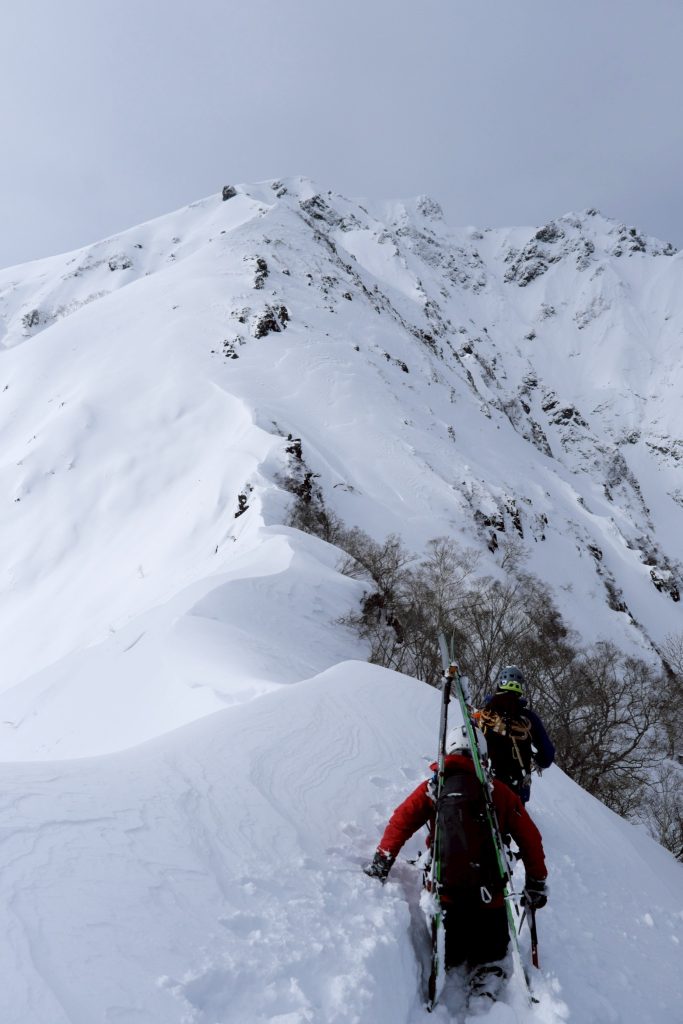 私はパウダースノーを求めてスキーを担いでのハイクアップでした。