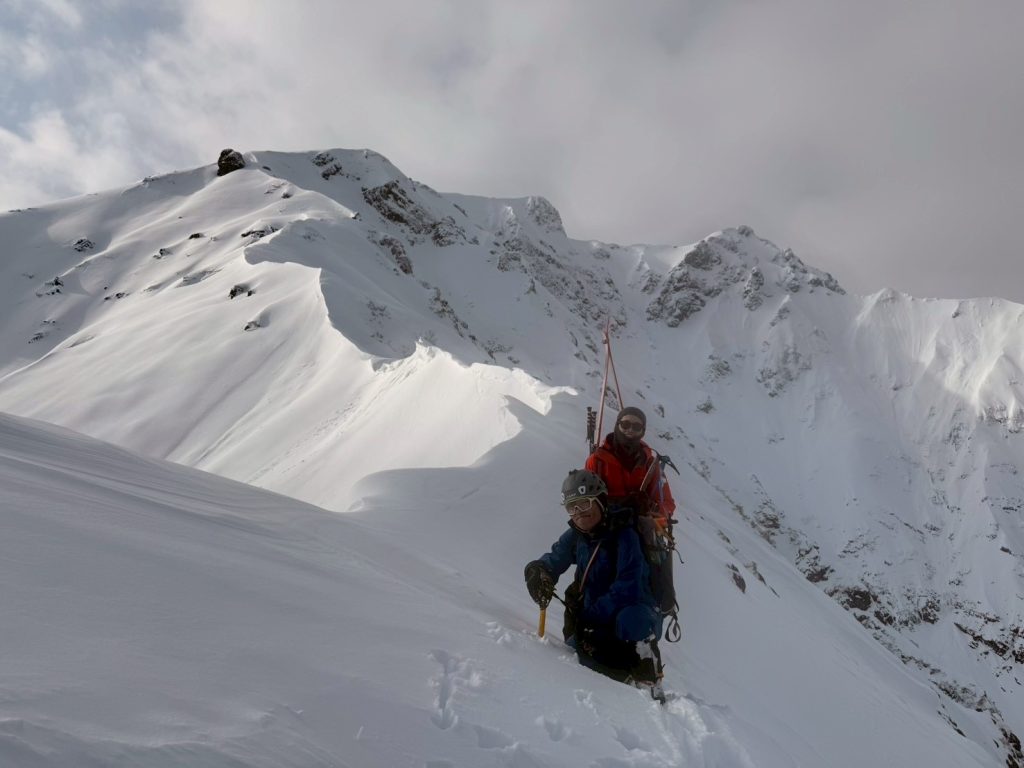 シャフトが緩く前傾しているため、今回登った傾斜角40°に近いような急斜面ではアックスとシャフト底部の2か所でグリップでき、急斜面でもピッケルを信頼して登ることができます!