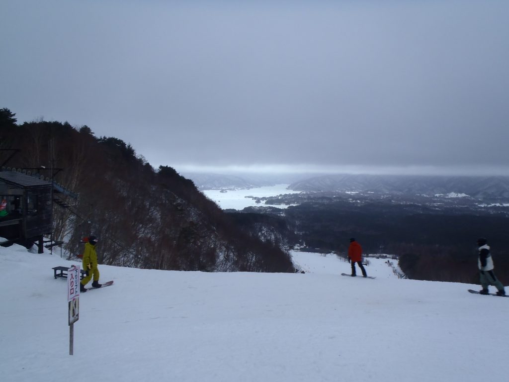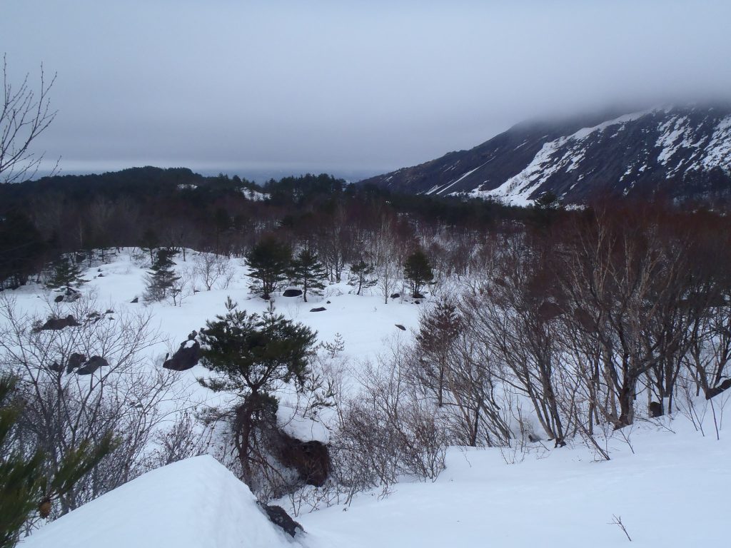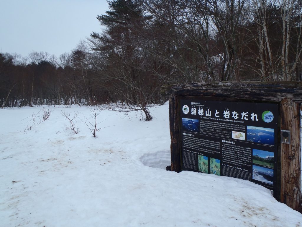 登山口となる裏磐梯スキー場の駐車場も雪が少なめ。でもスキー場の方は?というと、「オリンピック効果!」で、スキーヤー、スノーボーダーが目立ち、また、ファミリーで来られている方も多く、大変賑わってました。逆に登山(磐梯山やイエローフォール)目的の方が少な目でした。(例年は、登山目的の方が半数以上でしたのでびっくりです。)