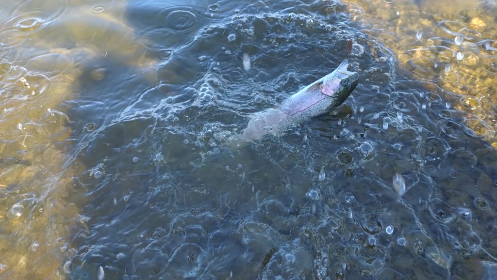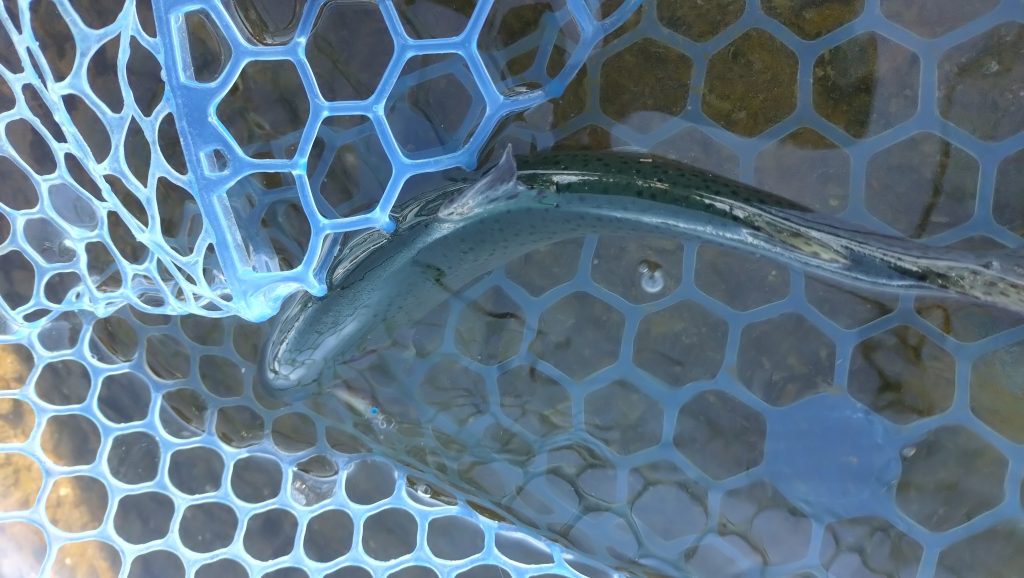 すぐ隣を路面電車のLRTが走るシチュエーションでの釣りでした。