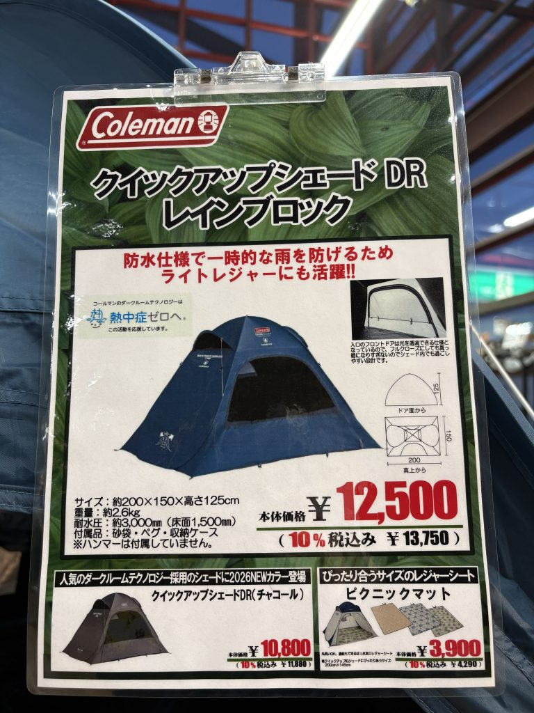 レジャーに人気のクイックアップシェードに、