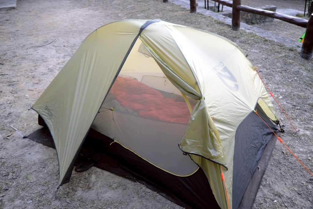 今回使用したテントはNEMOの「Hornet OSMO 2P」。