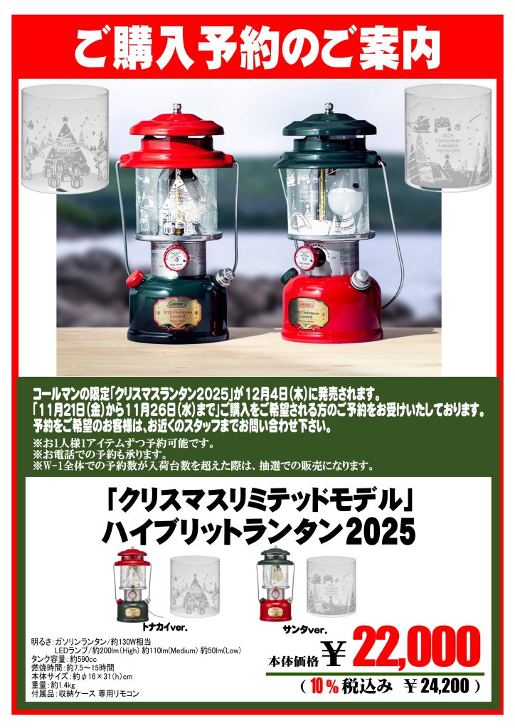 - コールマン クリスマスリミテッドハイブリッドランタン 2025 販売のご案内