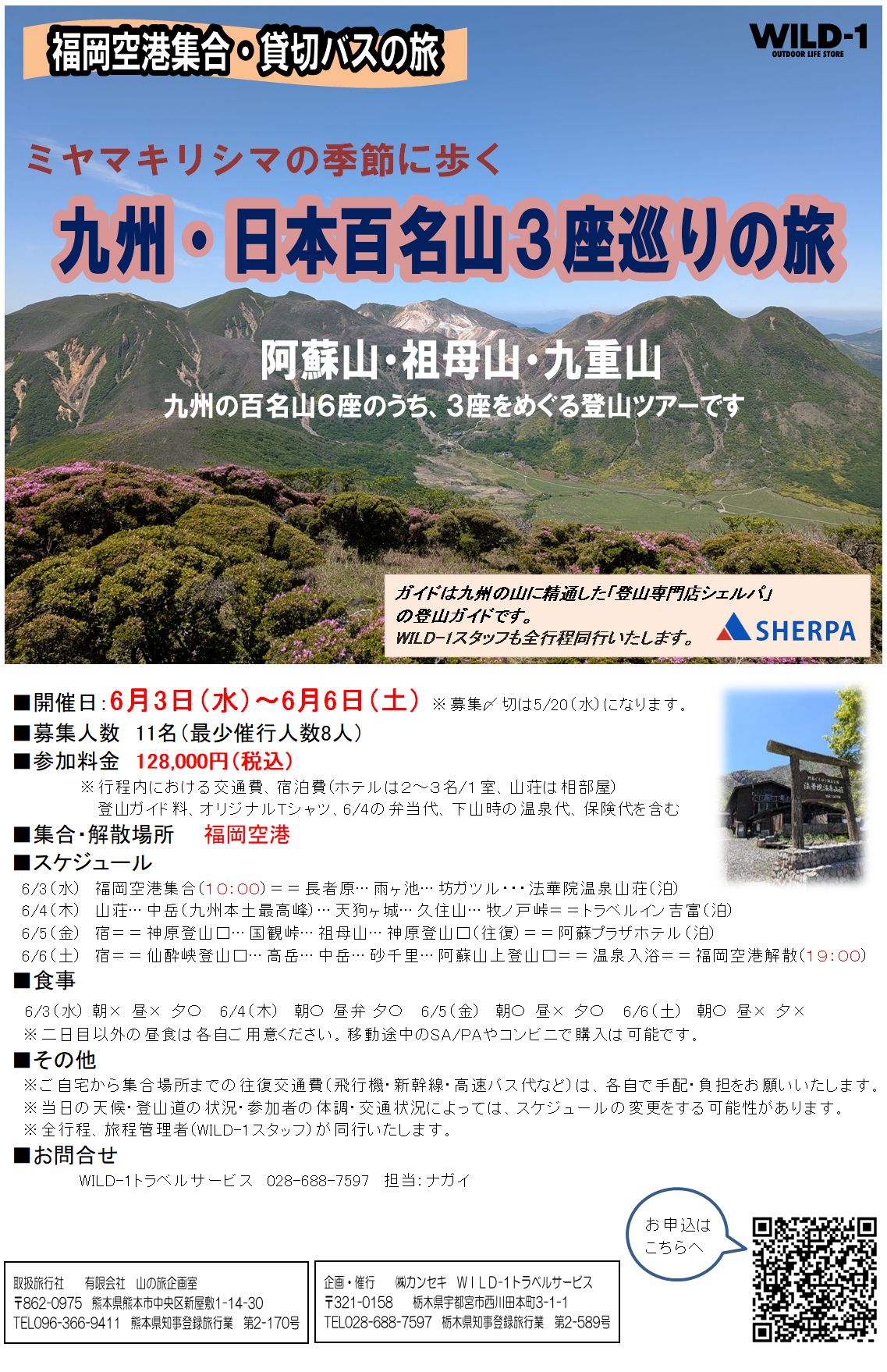 【ミヤマキリシマの季節に歩く】九州・日本百名山3座巡りの旅 開催日:2026年06月03日(水)~2026年06月06日(土)