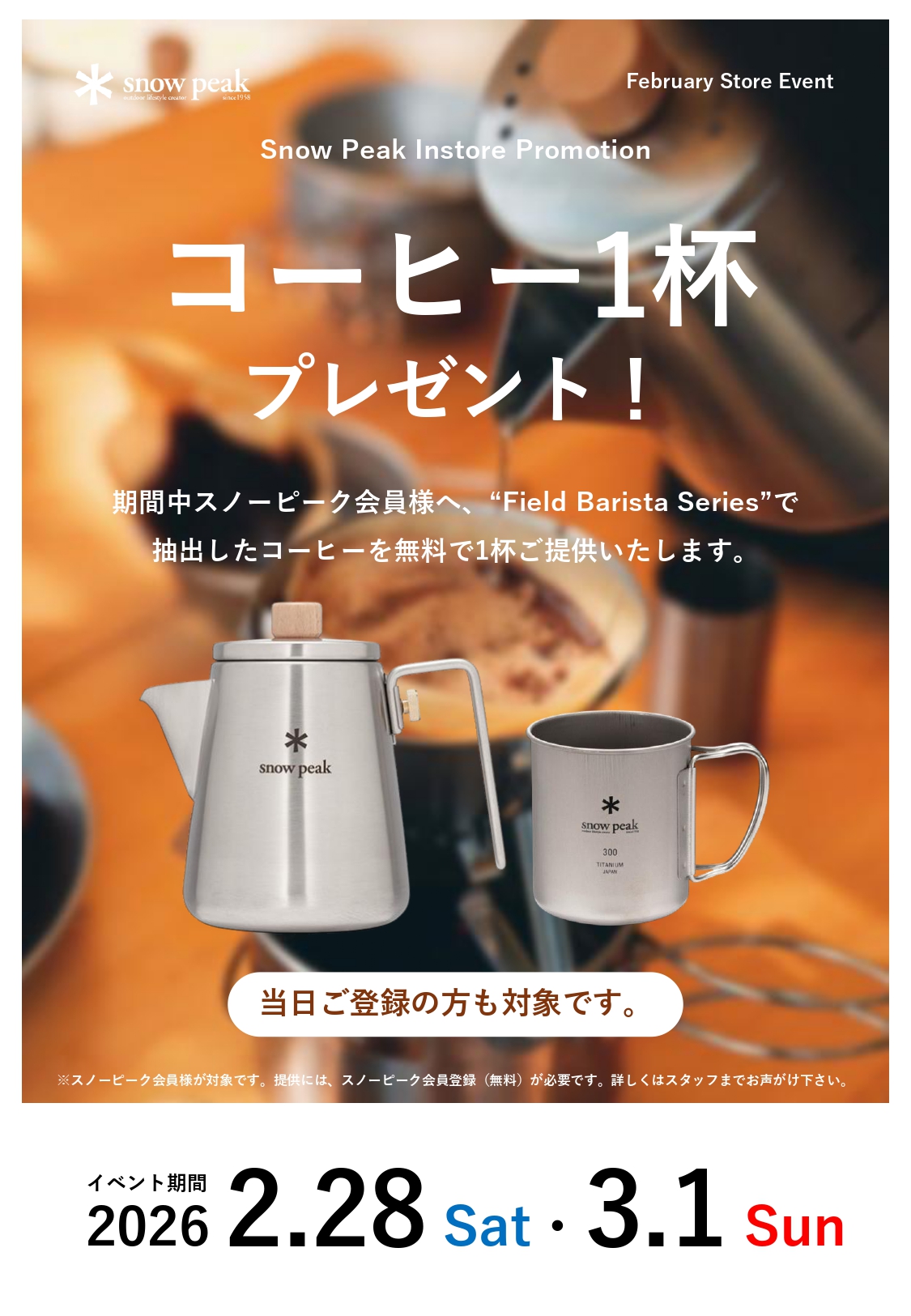 コーヒー1杯プレゼント! 開催日:2026年02月28日(土)~2026年03月01日(日)