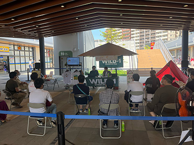 テント展示スペースにパンダシリーズを設営展示しながら開催!今回もたくさんの皆様にご参加いただき、こいしゆうか様のキャンプへの熱い想いや書籍制作にまつわるエピソードなど興味深いお話を聞かせていただきました。