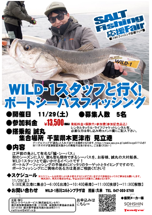 イベント情報2025/11/29(土)開催!「WILD-1市川コルトンプラザ店スタッフと行く!ボートシーバスフィッシング」