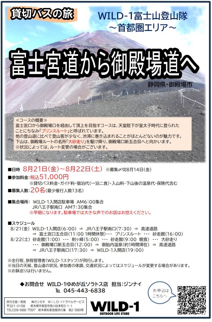 この夏、一緒にてっぺん目指しませんか? 今年もWILD-1では富士登山ツアーを企画しました。 「一度は登ってみたいけれど、定番のルートだけでは物足りない」 そんなあなたに贈る、富士山の醍醐味を凝縮したイベントです。 本ツアーでは、富士宮口か […]