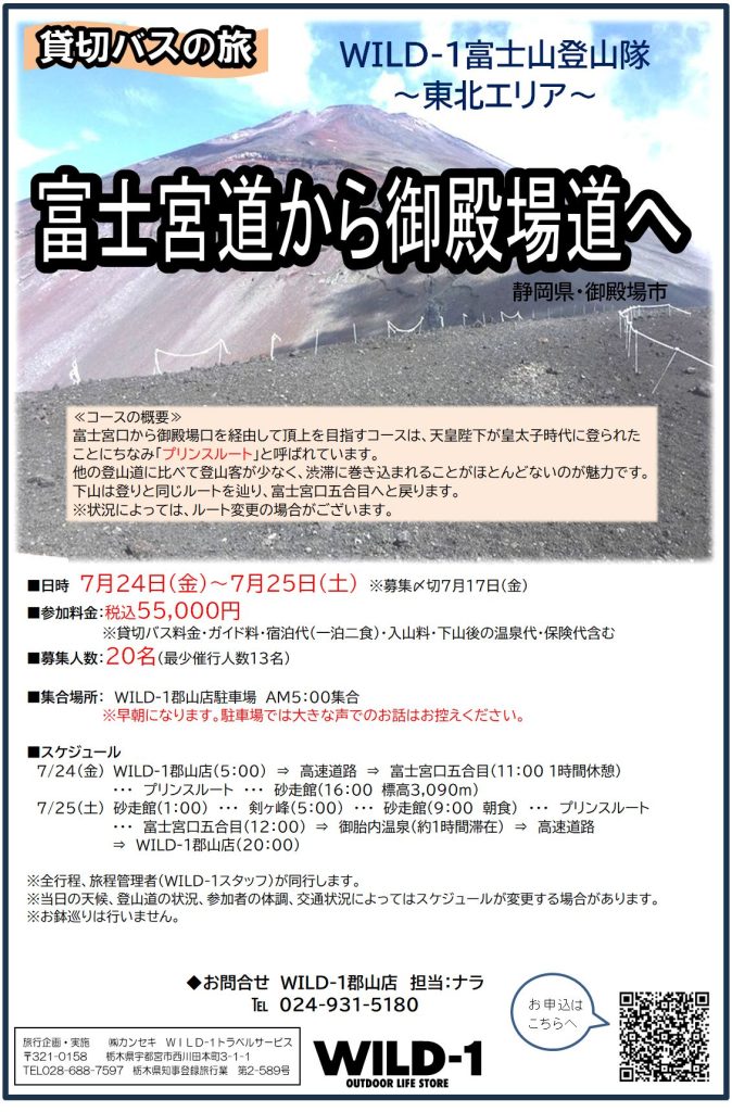 イベント情報【東北エリア出発】WILD-1富士山登山隊!富士宮口から御殿場口へ