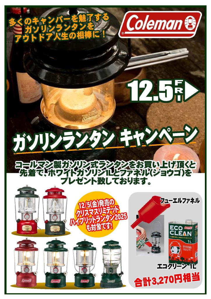 お知らせ★コールマン ガソリンランタンキャンペーン★