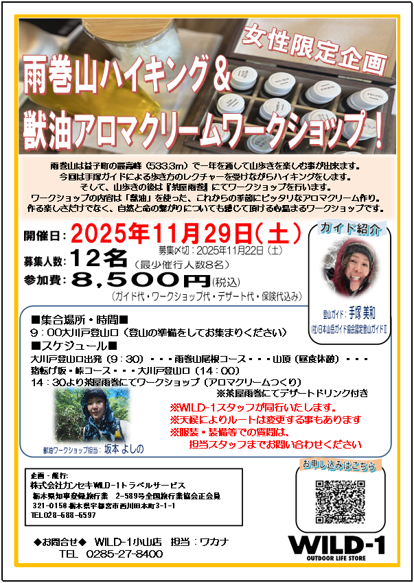女性限定‼雨巻山ハイキング&アロマクリームのワークショップ!