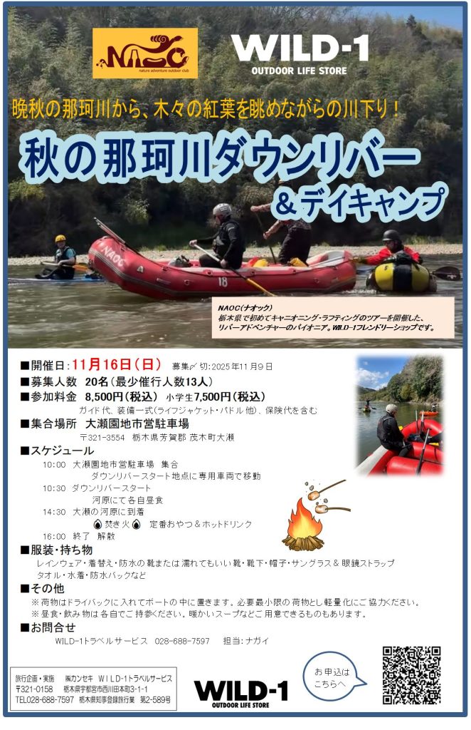 紅葉の季節に川下り(ラフティング)を楽しみませんか? ラフティングとは・・・ ゴムボート(ラフト)に乗り、ガイドの指示に従い参加者自身もパドルを漕ぎながら川を下るアクティビティ。 急流を下るイメージもありますが、今回は晩秋の那珂川から木々の […]