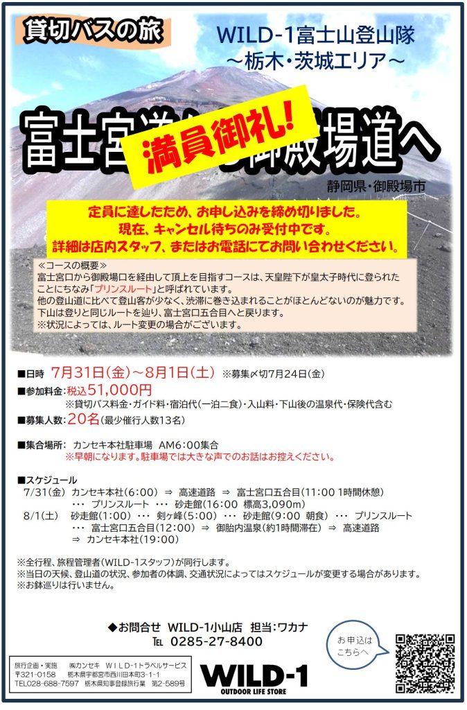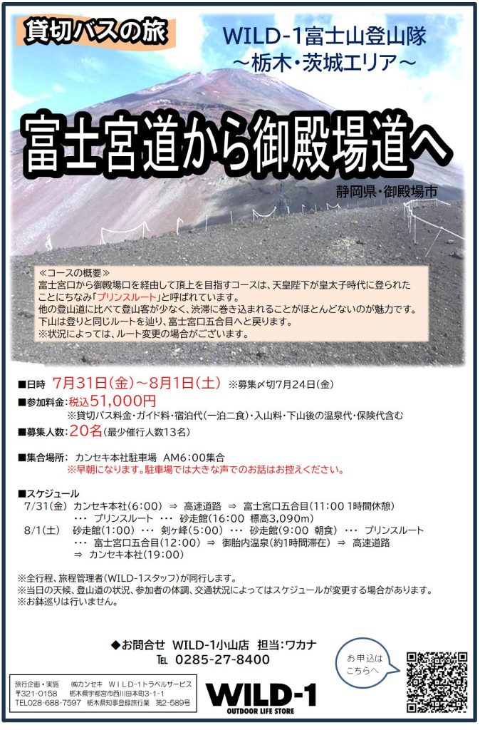 - 【栃木・茨城エリア】WILD-1富士山登山隊!富士宮道から御殿場道へ